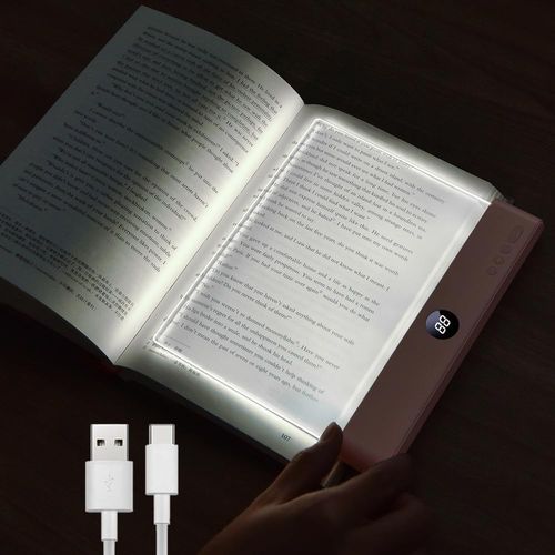 Book Light, Rechargeable Clear LED Flat Reading Light with 3 Colors & Timer, Dimmable Panel Plate Lamp Book Full Page Light for Reading in Bed at Night, Funny Gifts for Readers Kids Women Men (Pink)