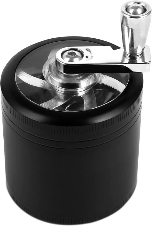 Grinder Crusher Pollen Herb Mill with Hand Crank for Dried Herbs Spice Spices Herb Made of Zinc Alloy 4-Piece Set with Pollen Scraper Black