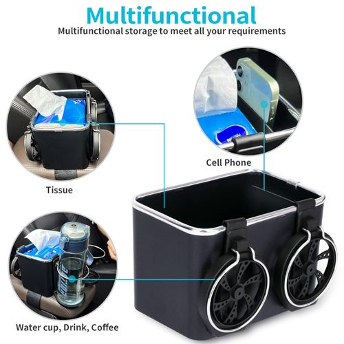 Car Armrest Storage Box Water Cup Holder, TikTok Car Seat Organizer Tissue Storage with Cup Holder, Multifunctional Car Organizers for Water Cup, Coffee, Drink, Paper Towels Cellphones