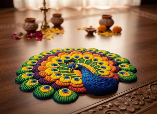 Decorative Peacock Floor Mat, Colourful Feather Design, Indoor Entrance Rug 39×39in