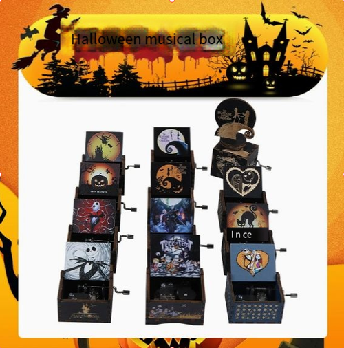 Halloween Exclusive! Classic Carved DIY Wooden Music Box — Hand-Cranked Craft Gift