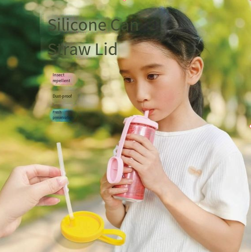 Silicone Can Lid with Straw, Airtight Soda Can Cover, Reusable Leak-Proof Beverage Sealer for Beer, Soda, Energy Drinks - Eco-Friendly Kitchen Gadget