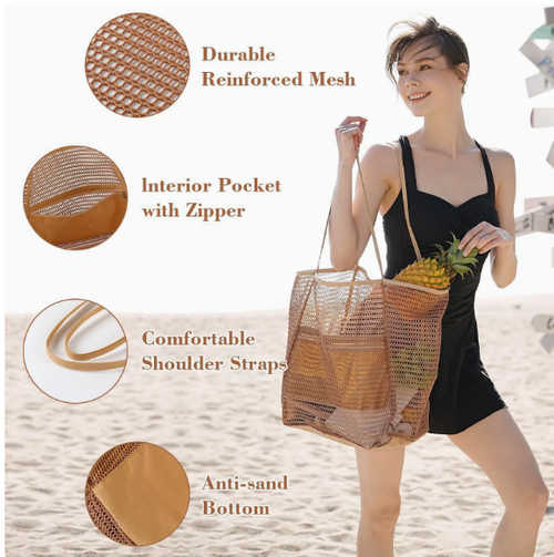 Versatile and Travel-Friendly! This foldable mesh beach bag for women is the perfect choice for outdoor excursions, shopping, and organization. Your ideal summer companion: a collapsible mesh tote that doubles as a shoulder shopping bag, offering effortless storage for your beach trips.